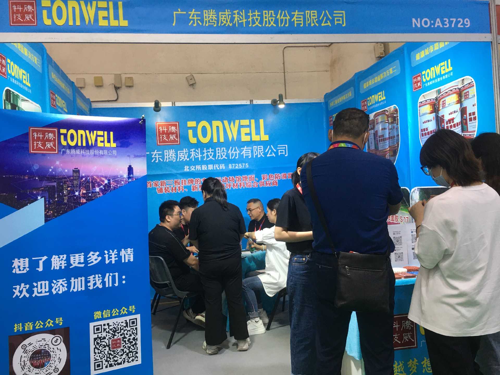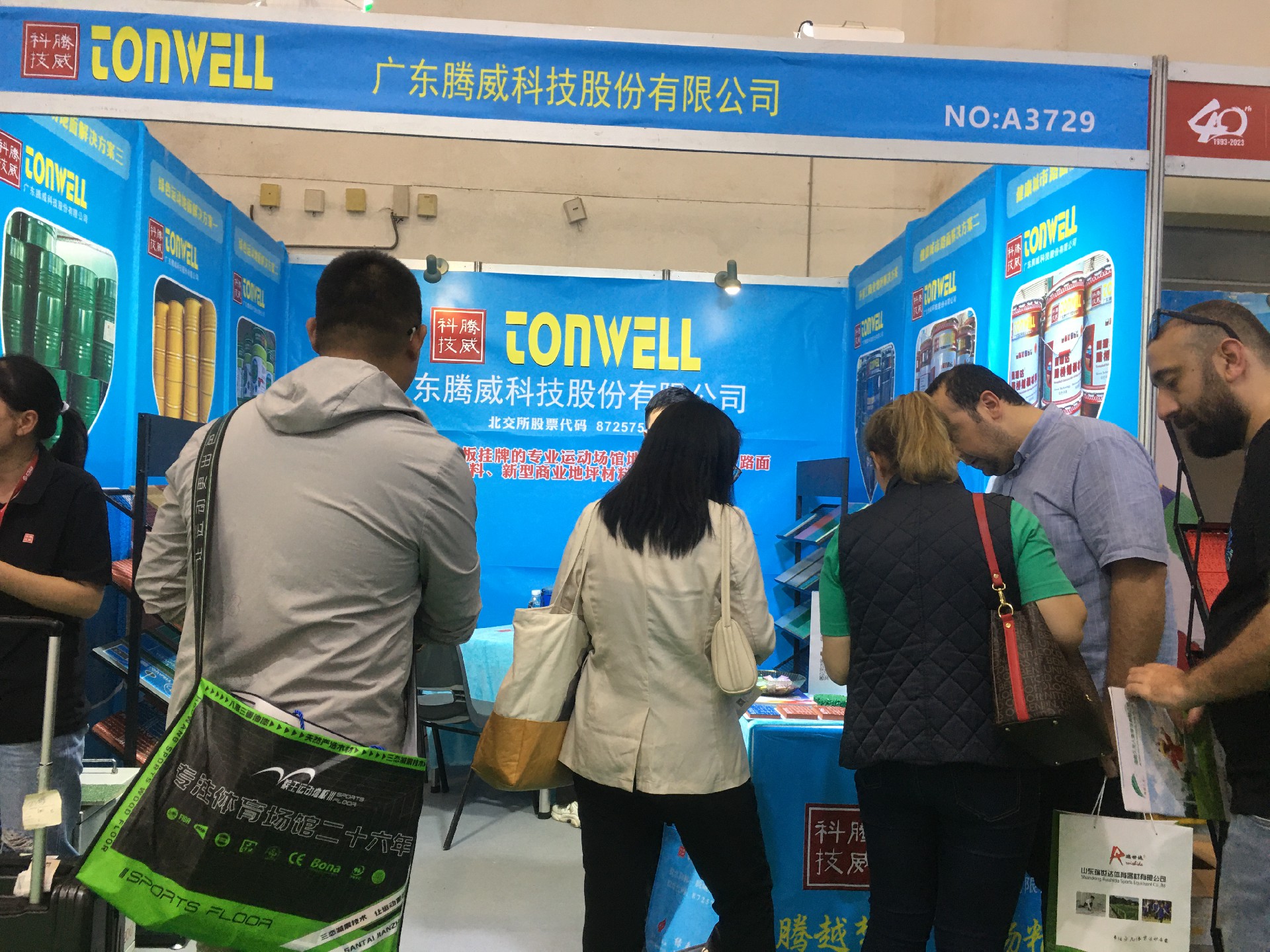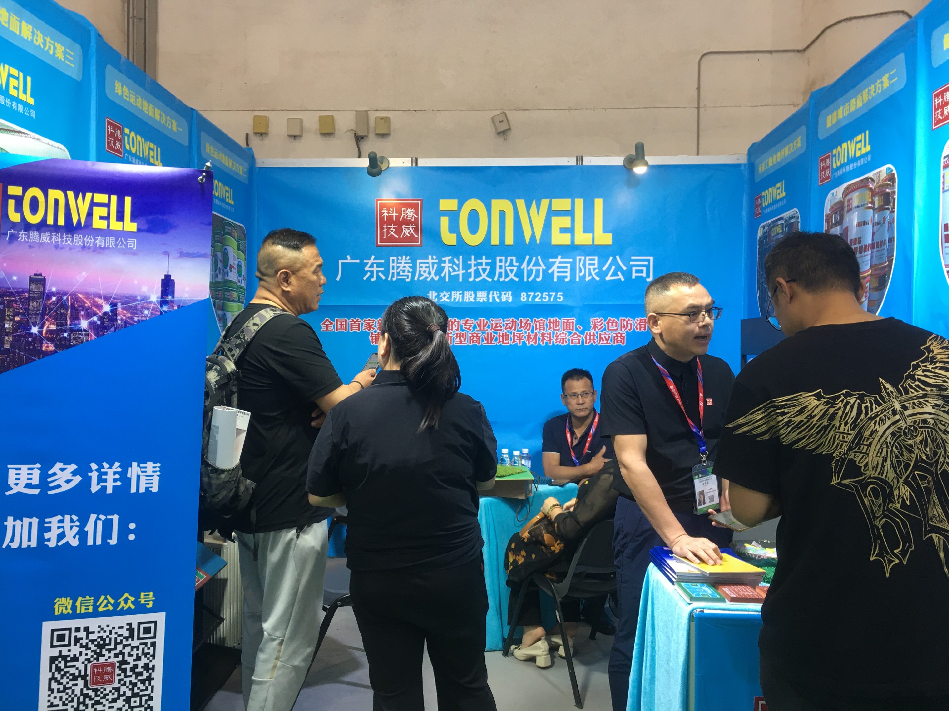 廣東騰威科技攜帶“運動場館地面材料”、“市政路橋地面材料”、“工商業地坪材料”三大鋪裝體系亮相展會現場,為客戶提供一站式地面解決方案。