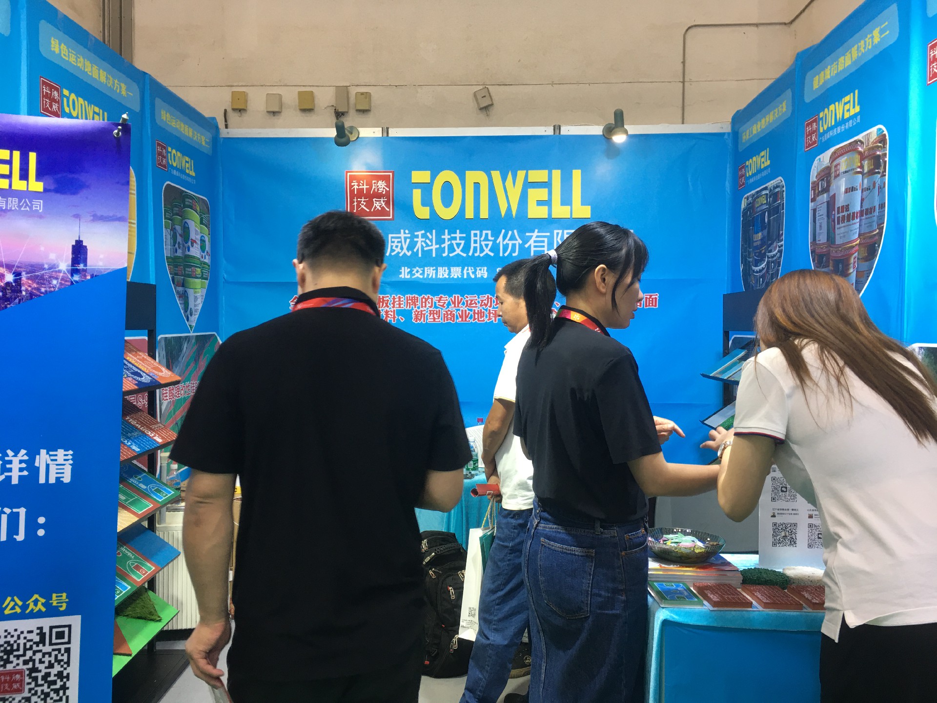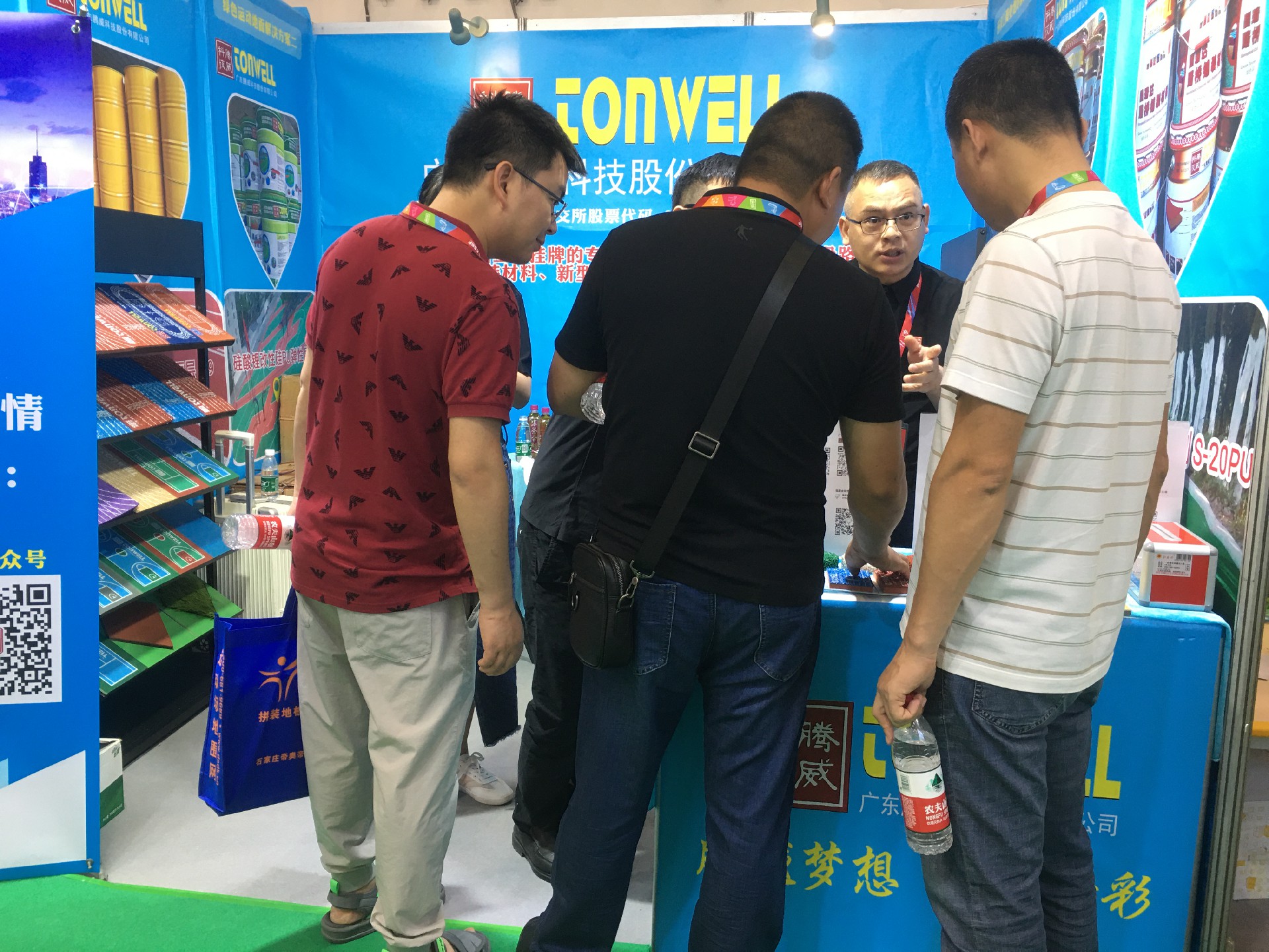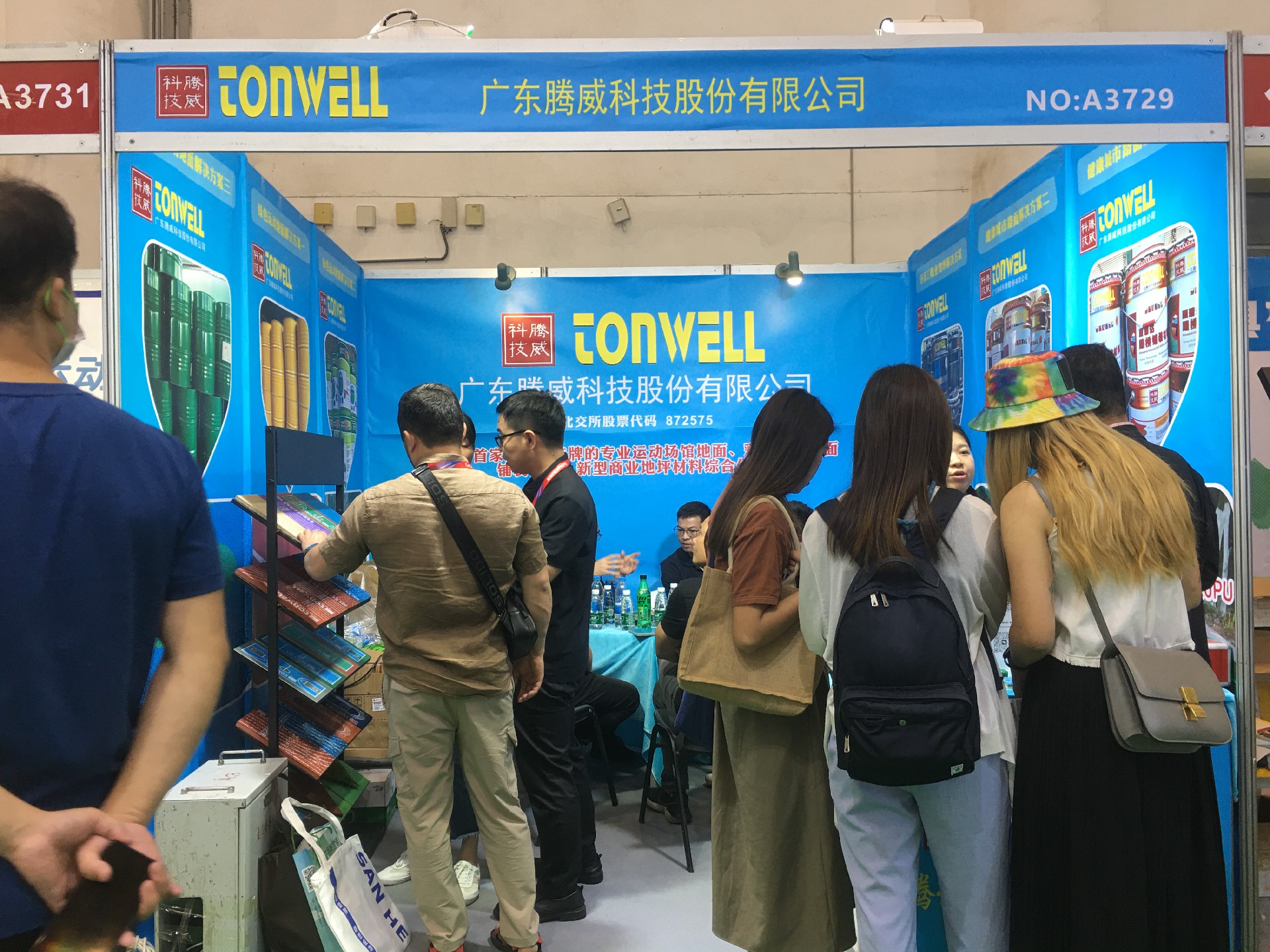 廣東騰威科技攜帶“運動場館地面材料”、“市政路橋地面材料”、“工商業地坪材料”三大鋪裝體系亮相展會現場,為客戶提供一站式地面解決方案。